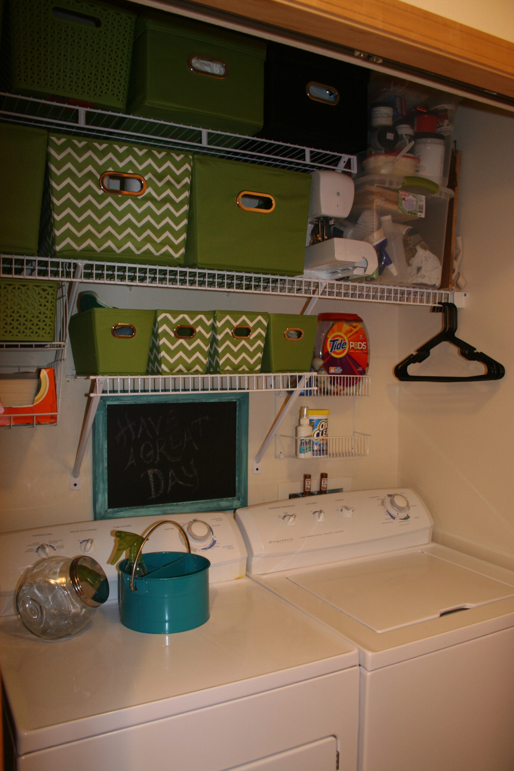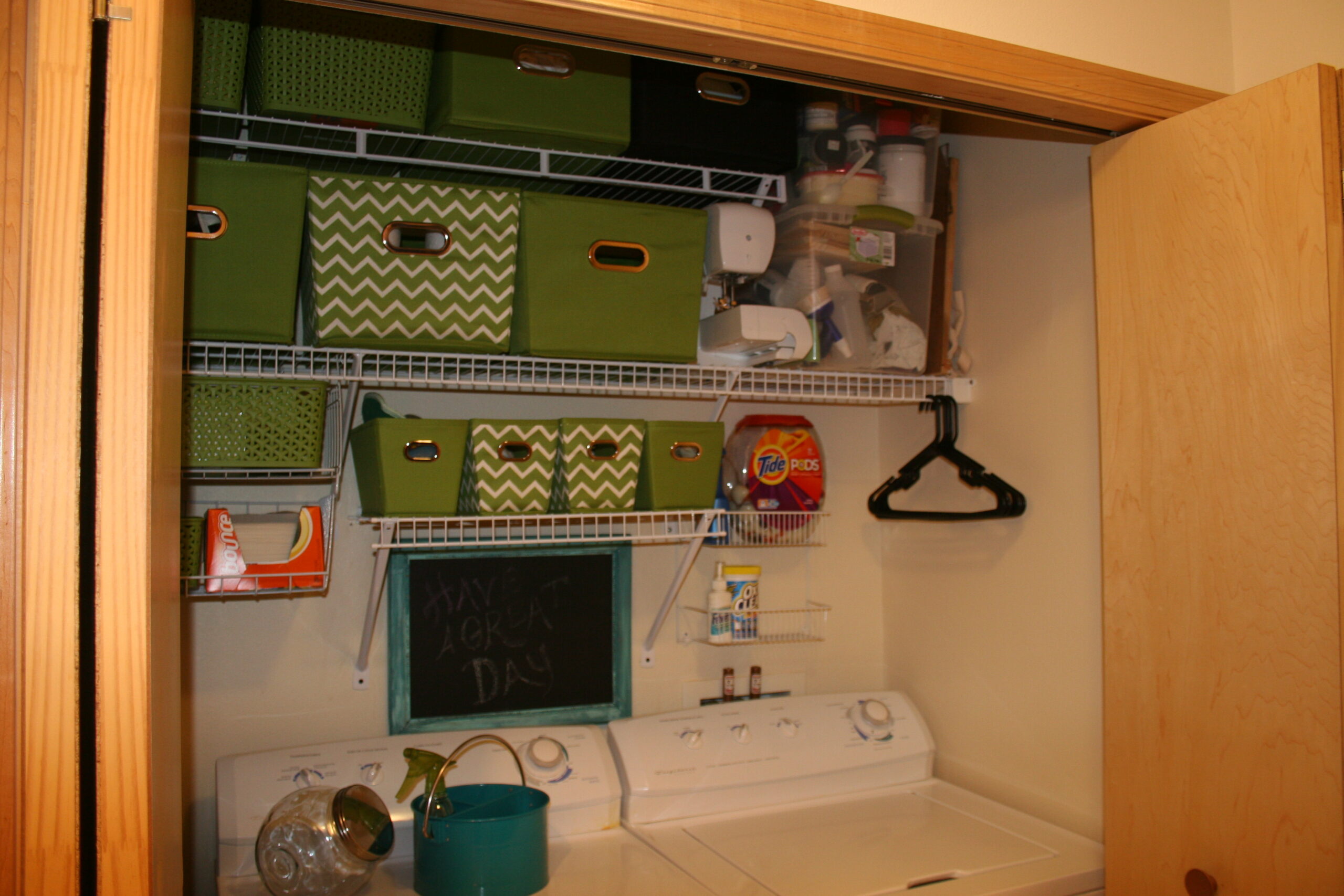 I got  to share some of my organization skills when a photo from one of my previous posts was featured in the National Association of REALTORS® House Logic article Your Home’s Unsung Hero – The Closet. When we lived in our one bedroom condo, the place was big, but not large enough for two people with a lot of stuff. I needed to use ever single inch to stow away projects when I wasn’t working on them. I created extra shelving in our Laundry Closet, which happened to be in the bathroom. I used totes from Target to store all those projects in, so it made the closet look bright and organized.